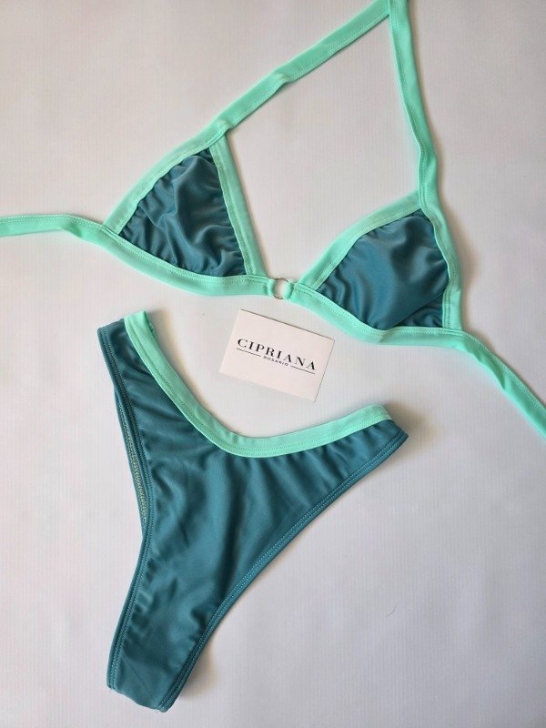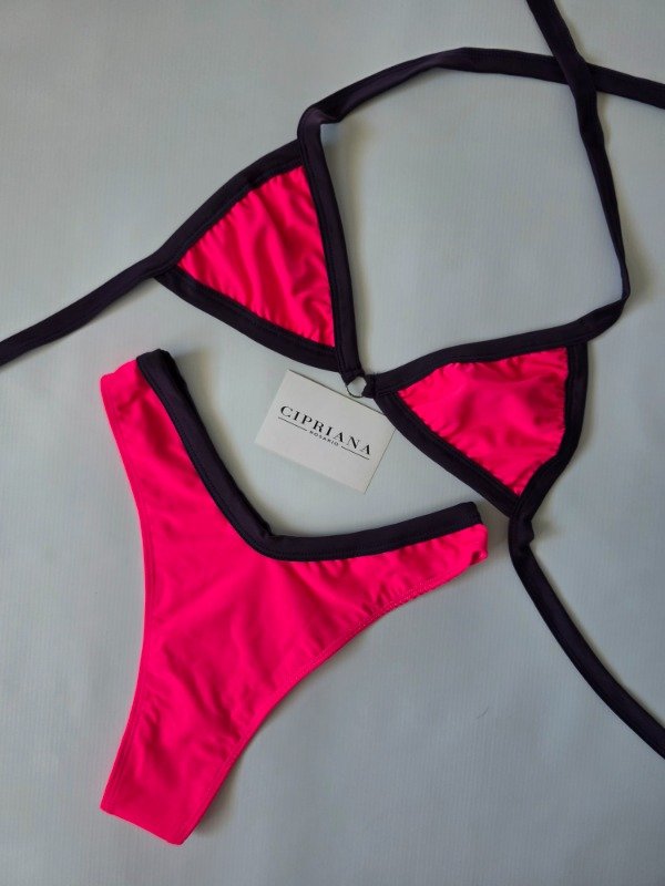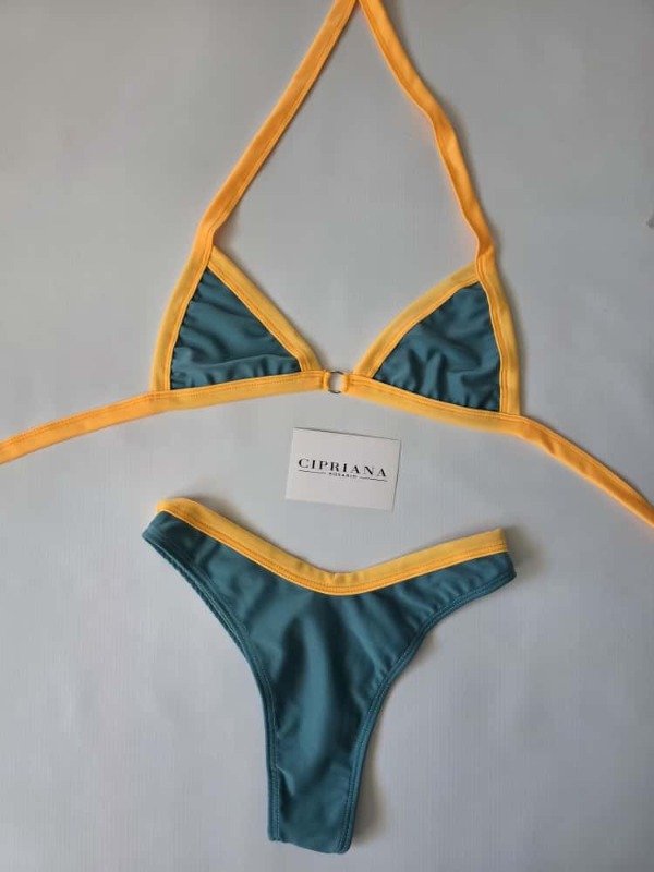 Bikini con top triangulo, ajuste por espala y cuello permite personalizar el calce y brinda comodidad y soporte.La bombacha colalees de tiro medio comoda para tu cuerpo.
